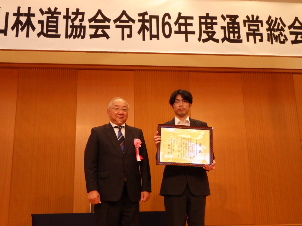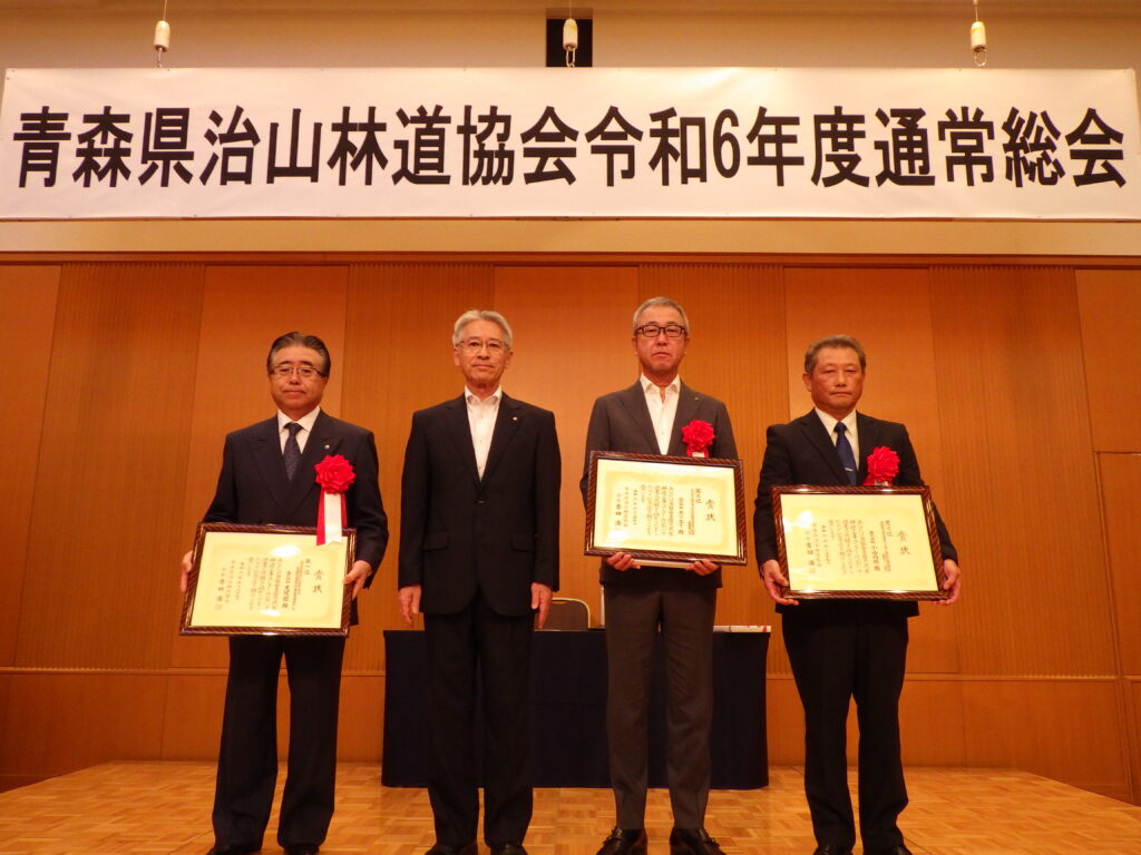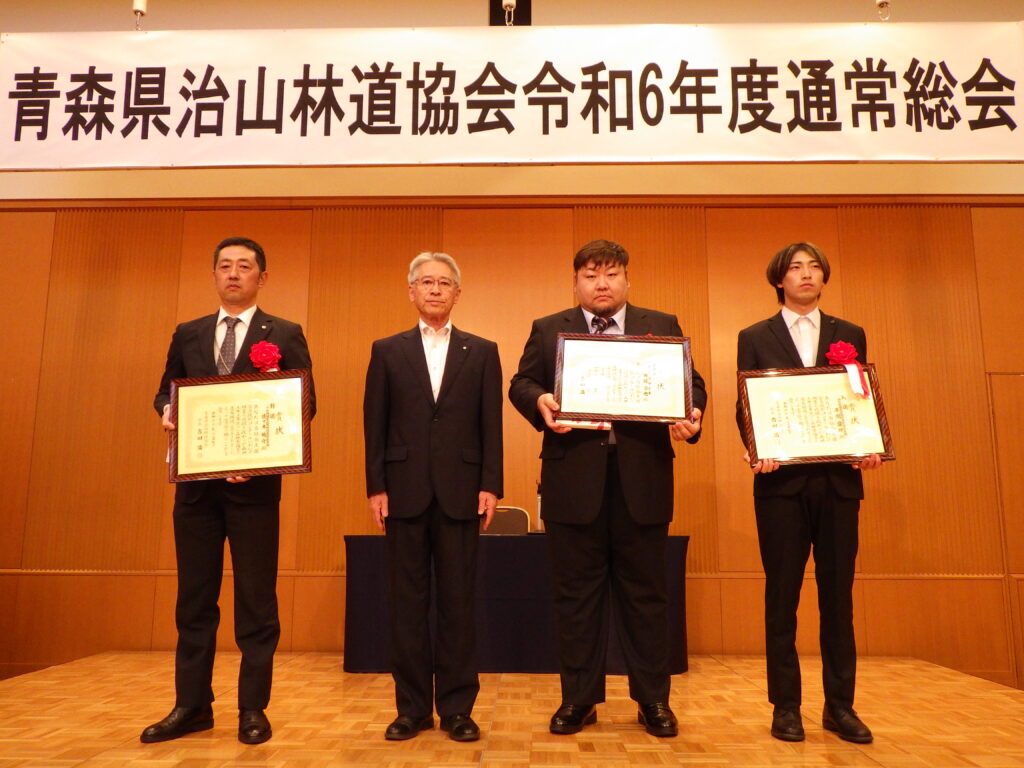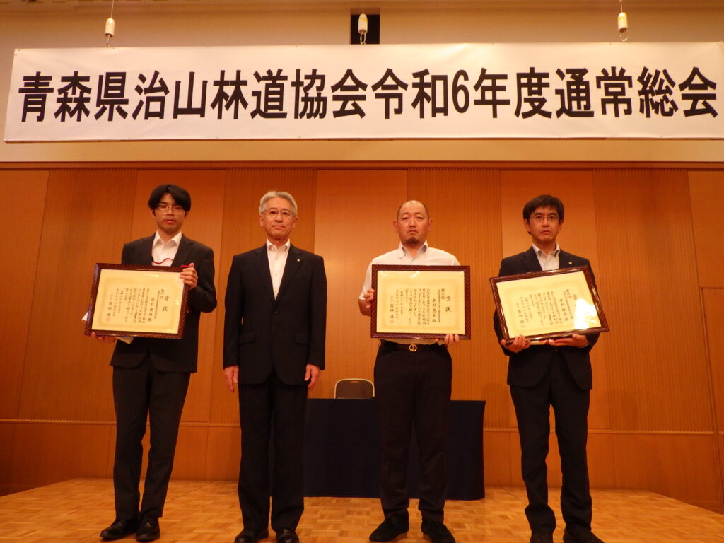 また、林道維持管理1位の東北町様、林道工事1位の(株)大坂組様には、青森県知事賞、木材利用1位の宮前様には青森県木材利用推進協議会長賞、木材利用2位の木村様には青森県森林組合連合会長賞がそれぞれ授与されました。誠におめでとうございました。